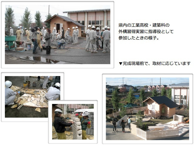 施工実績が評価され、エクステリアのデザイン賞に入賞したり、業界誌の取材を受けたり、工業高校の実習講師として招かれたことも。