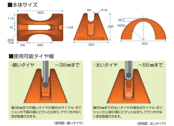 耐久 樹脂製なのでタイヤに優しく、丈夫で長持ち!