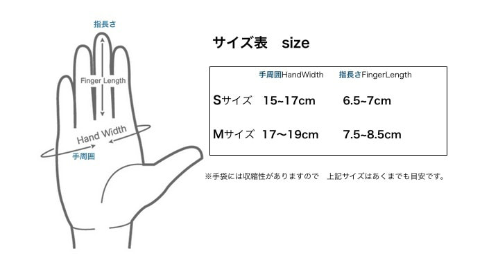 紫外線から肌を守るUVカット効果。扱いやすく、丈夫な指先のレザー仕様。