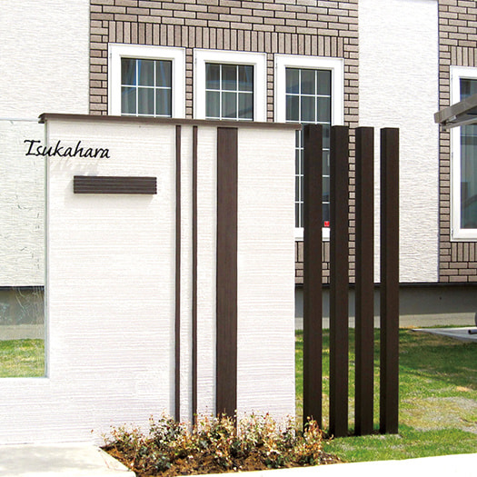 スクリーンや門柱として使ったり、門塀の側面にも取付けることができるディーズデコ・ティンバー。1本から販売しております。