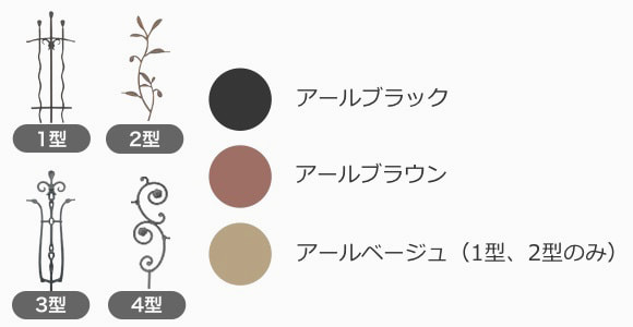 おしゃれな格子のようなデザインの1型と、枝葉をモチーフにした2型、アールがかかったエレガントな3型、お花モチーフの4型から選びいただけます。