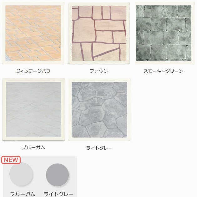 | オプション | コンクリート用顔料2kg ※カラーはヴィンテージバフ・ファウン・スモーキーグリーン・ブルーガム・ライトグレーから選べます |