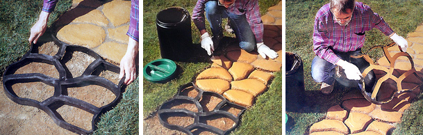 コンクリートをパスメイク(型)に流し込むだけで、オリジナルの石畳やアプローチができるDIYキット。庭先や玄関まわりから駐車場などの広い空間まで、自分のオリジナルでデザイン&デコレーションができ、一人でも簡単にDIYを楽しめます。