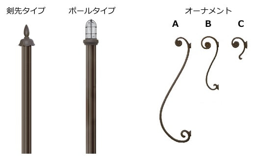 このほか、ポストやオーナメントなどを自由な位置に取り付け、組み合わせて、お好みのデザインを作ることができます。