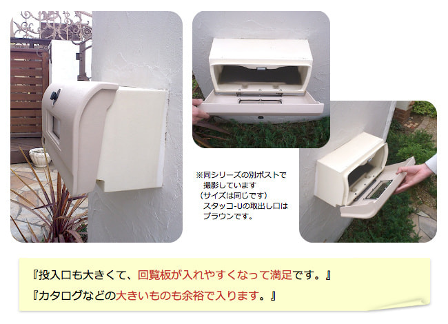 投入口はA4サイズのバインダー式回覧板が余裕で入る横幅350mmサイズ。