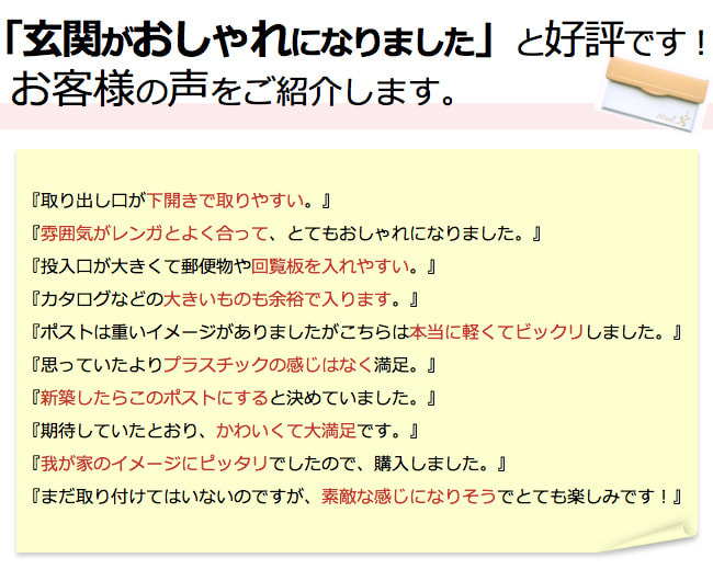 使い心地抜群で頑丈なFRP(強化繊維樹脂)製。薄い壁掛けポストのようなデザインですが、実際は埋め込みタイプなので収納力は十分。一般的なポストの約1.5倍の容量があります。
