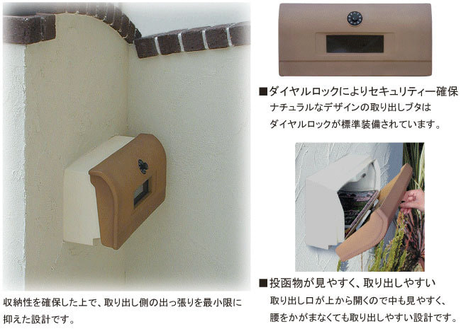 壁掛けポストのデザイン性と、埋め込みポストの収納力を兼ね備えています。