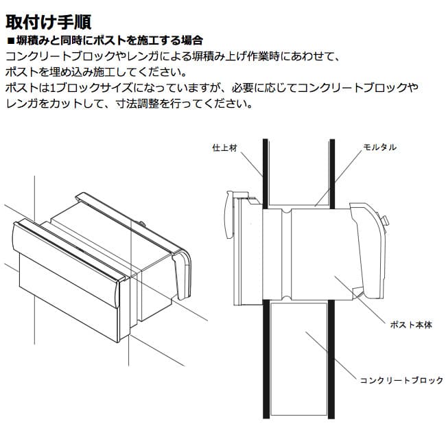 施工寸法が同じで一般に1ブロックサイズといわれているポストの約1.5倍の容量があります。