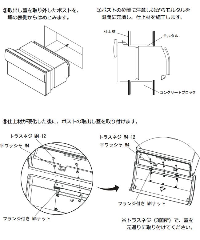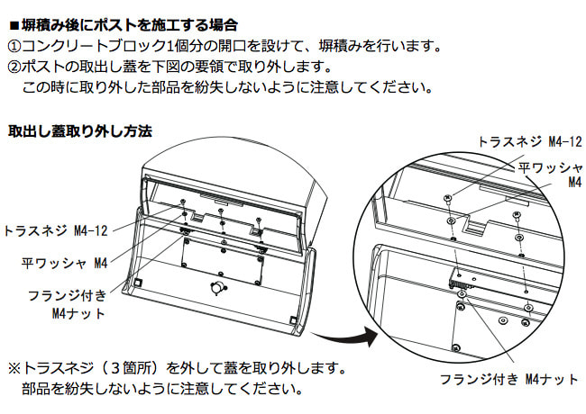 正面から見ると壁掛けポスト、でも実は埋め込みポスト。