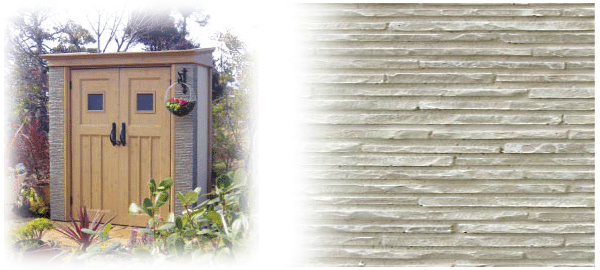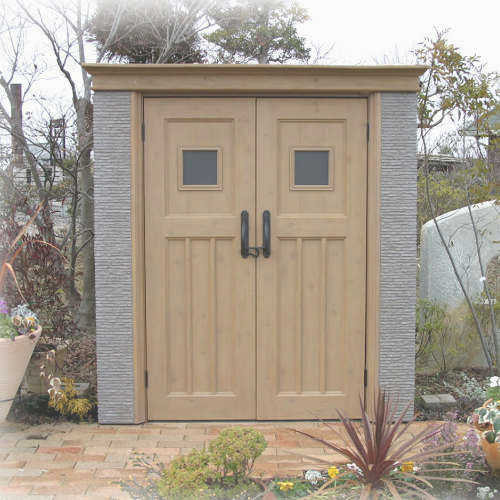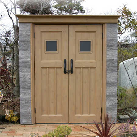 建築物のような本格的な石張り調。ユニット式物置では考えられなかったデザインを実現しました。レンガや木の部分は選び抜かれた素材を基に、忠実に復元化しています。ディーズガーデンの特徴あるオリジナルデザインです。