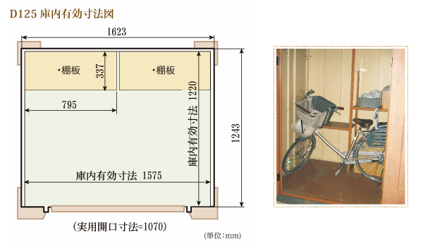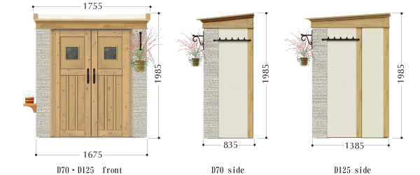 こちらはD125の寸法です。D70はこちらディーズシェッド・カンナフォルテD70