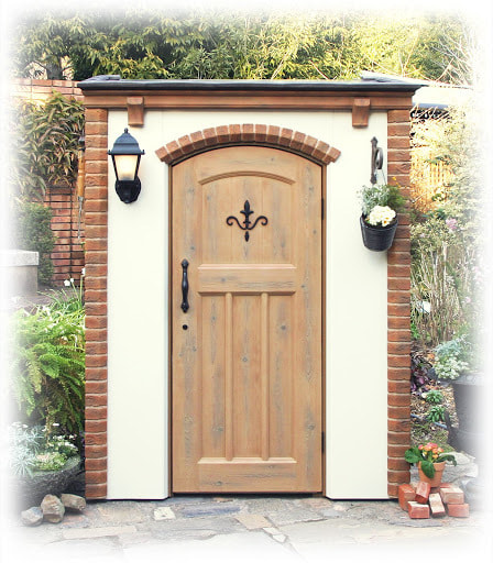 ヨーロッパの街角をイメージしてアーチ状の一枚扉を採用しました。 アイアン調の飾りと上部のレンガアーチが貴方のお庭を個性的に演出します。