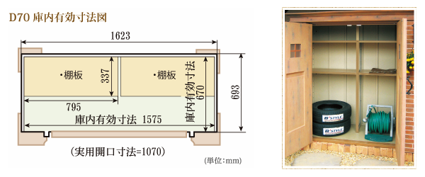 D70は一般的なサイズで、中型車のタイヤが収納可能です。