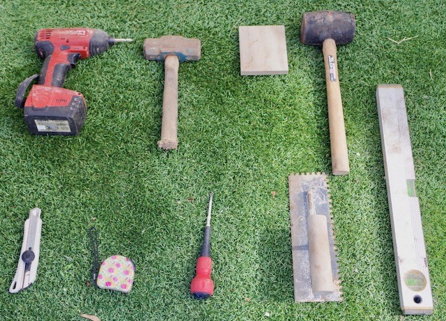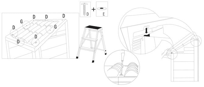 支柱と屋根材を電動ドライバー使ってネジ止めしてください。