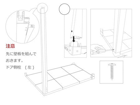 支柱、板材は動く可能性が高いのでしっかり抑えながらねじ止めしてください。