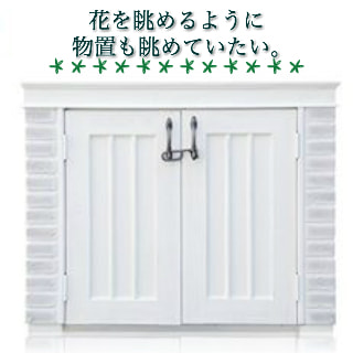 ガーデニングをすると、花鉢やスコップ、ブーツ、土、肥料など家の中に持ち込みにくいものが多く出てきますよね。そんなガーデニンググッズの収納に最適な小型の物置です。レンガと木を組み合わせたデザインは、ハーブの花の中にとけこむように自然なデザインです。