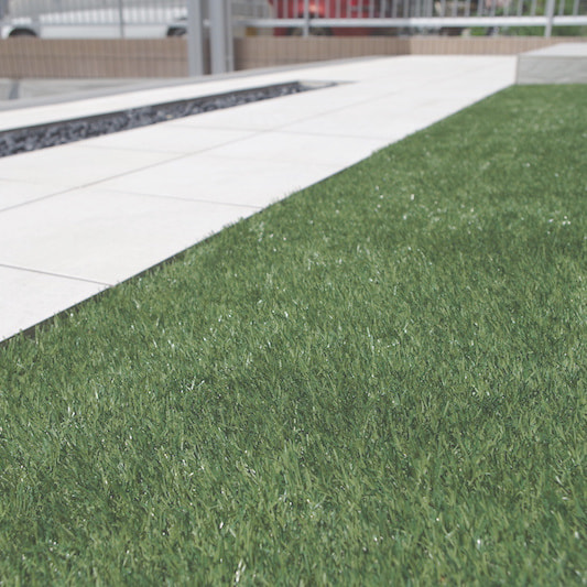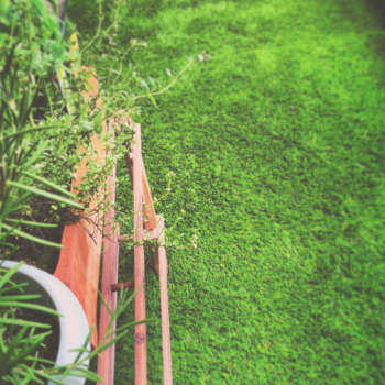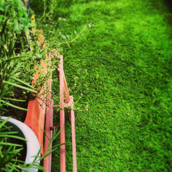 この人工芝はガーデン用です。本物に近づけるために枯れ葉色の芝葉も織り込まれており、プロの職人にも利用される高品質品です。
