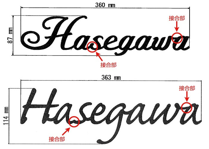 表札の大きさを変更できますか? | 文字間隔を狭める、または広げることで少し調整できます(A-07除く)。 縦幅は変更できません。 |