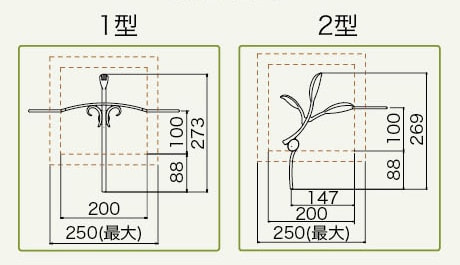 おしゃれな格子のようなデザインの1型と、枝葉をモチーフにした2型からお選びいただけます。