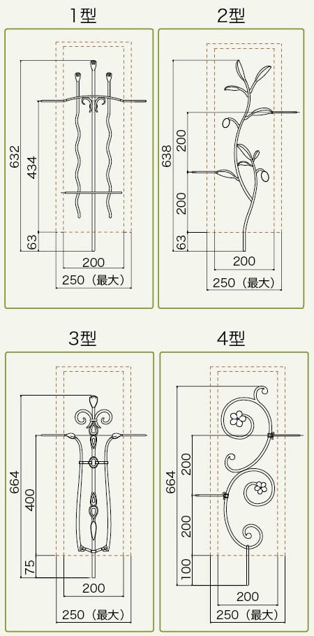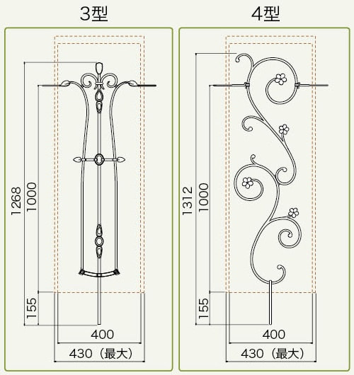 デザイン | 1型(格子)/2型(リーフ)/3型(エレガント)4型(フラワー) |