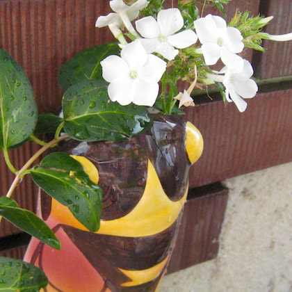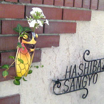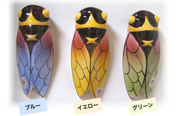 せみの頭部に穴が開いていて、花瓶のように花やグリーンを活けることができるタイプです。