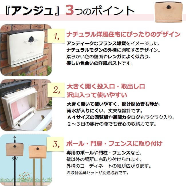 備考 | 門扉やフェンスに取り付ける場合、「取付金具セットA」が別途必要です。 |