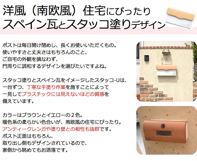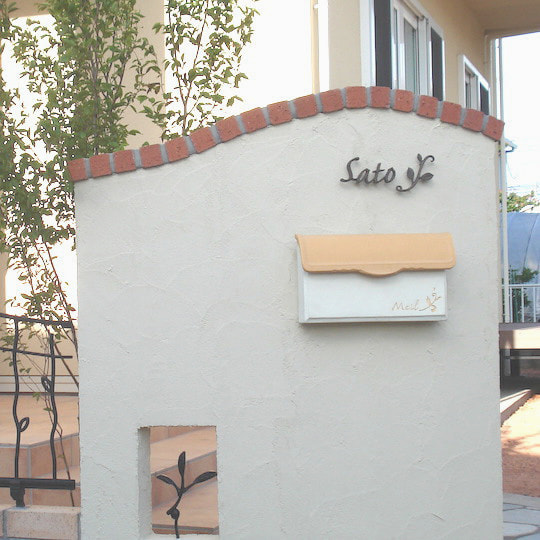 スタッコ塗りとスペイン瓦をイメージしてデザインされました。やわらかい色合いの塗り壁やアンティーク調のレンガ、洋風の玄関やアプローチにおすすめです。