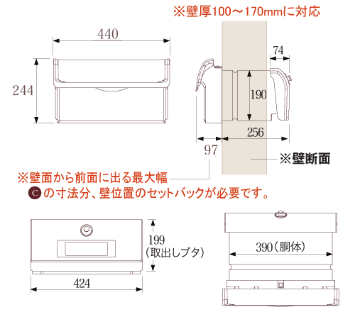 サイズ | 幅440×高さ244×出幅97mm(奥行全体353mm) |