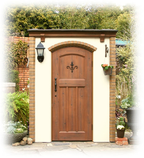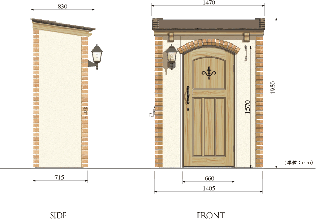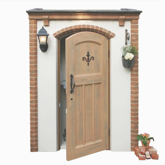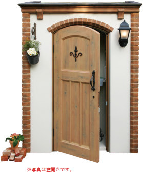 ヨーロッパの街角をイメージしてアーチ状の一枚扉を採用しました。 アイアン調の飾りと上部のレンガアーチが貴方のお庭を個性的に演出します。