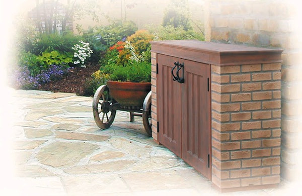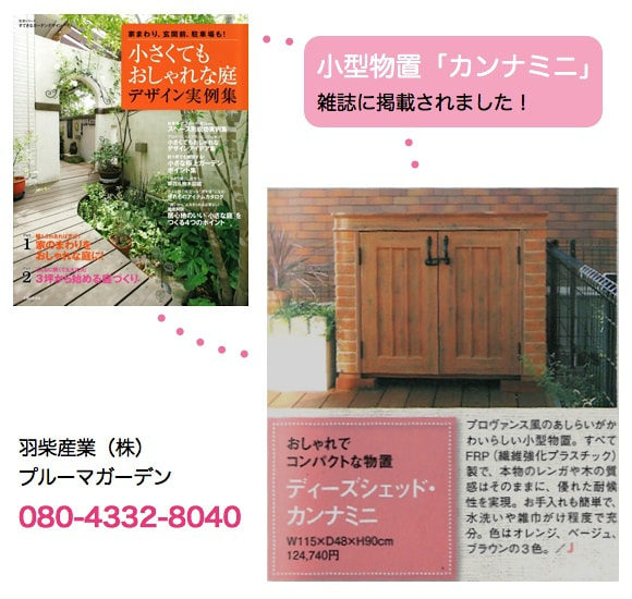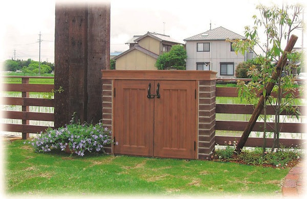 ガーデニングをすると、花鉢やスコップ、ブーツ、土、肥料など家の中に持ち込みにくいものが多く出てきますよね。そんなガーデニンググッズの収納に最適な小型の物置です。レンガと木を組み合わせたデザインは、ハーブの花の中にとけこむように自然なデザインです。