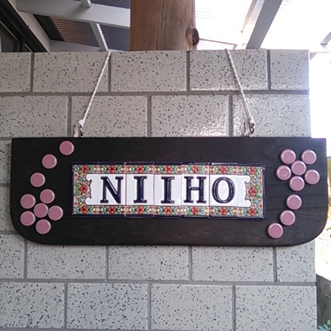 モザイクのデザインと色合いが鮮やかな、スペイン製のタイル表札。