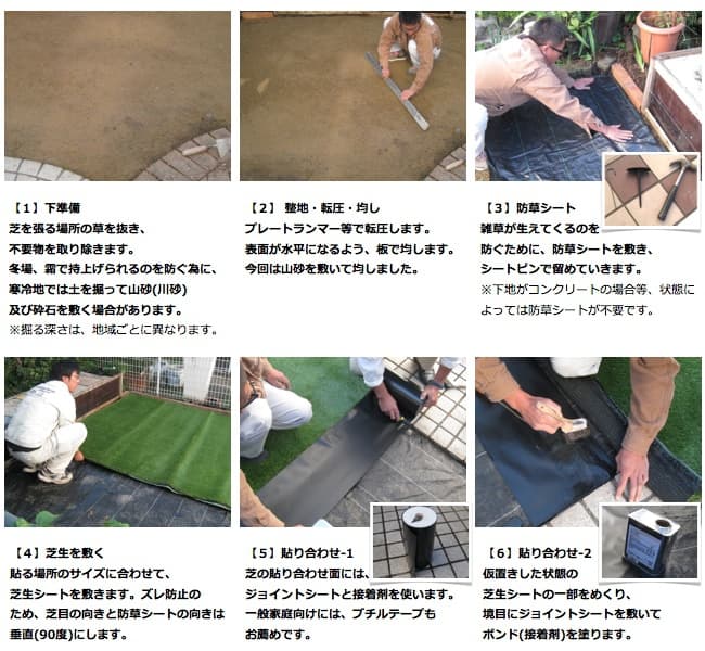 ジョイントシートは人工芝の収縮を抑制する役割もあるため、人工芝をつなぎ合わせるときは必ず使用してください。その際、必ず接着剤で固定してください。
