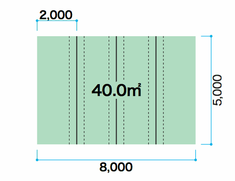 下図のように40平米を施工する場合に必要な各部材の目安です。