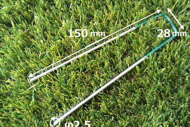 U字釘・・・人工芝を土に施工する際、固定するための釘です。