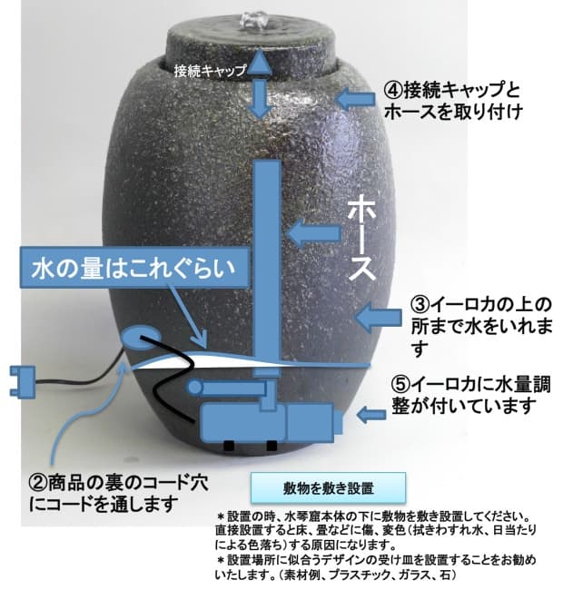 *設置の時、水琴窟本体の下に敷物を敷き設置してください。