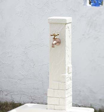 自然な風合いの、角型タイプの水栓柱です。