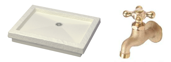 本体+ガーデンパン+蛇口のセット。蛇口は横水栓十字ハンドルが標準です。