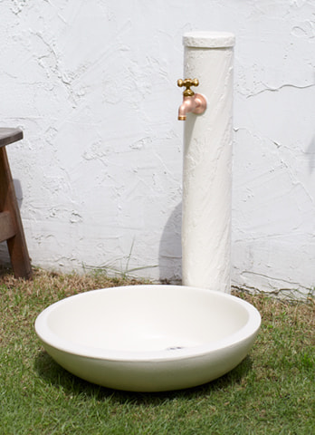 砂岩模様が上品な、丸型タイプの水栓柱です。