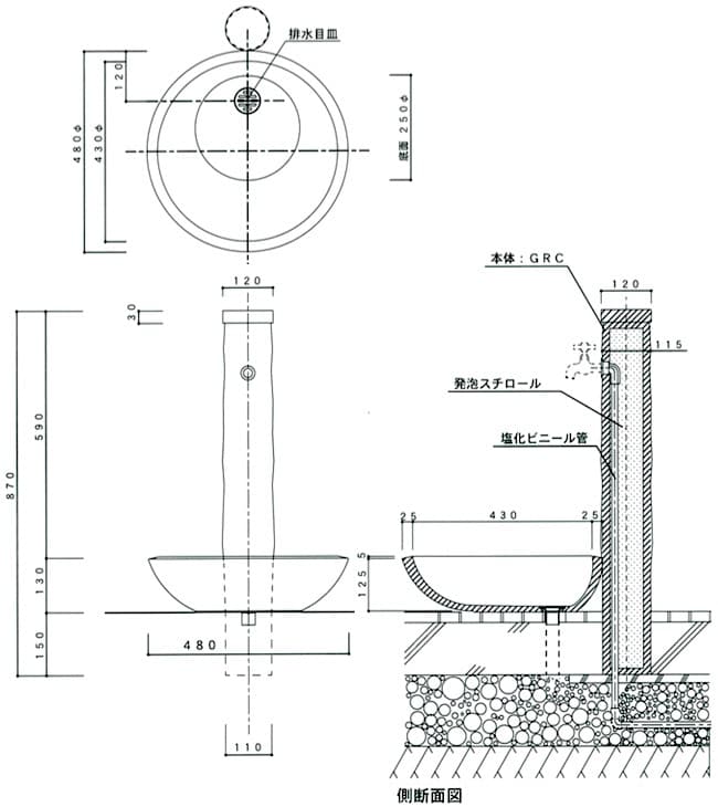材質 | GRC(ガラス繊維強化セメント)アクリルウレタン樹脂塗装 |