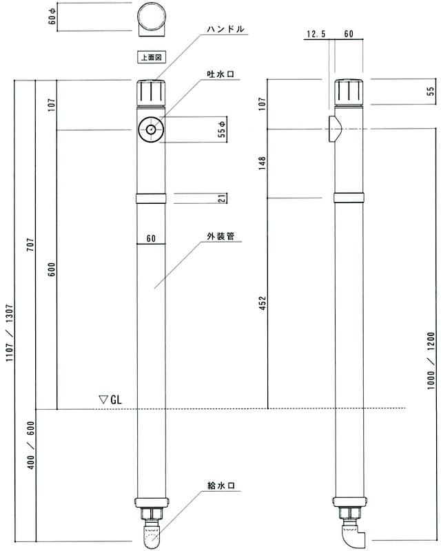 材質 | 外装管:耐食アルミ柱/ウレタン塗装 揚水管:中シャフト/ステンレス |